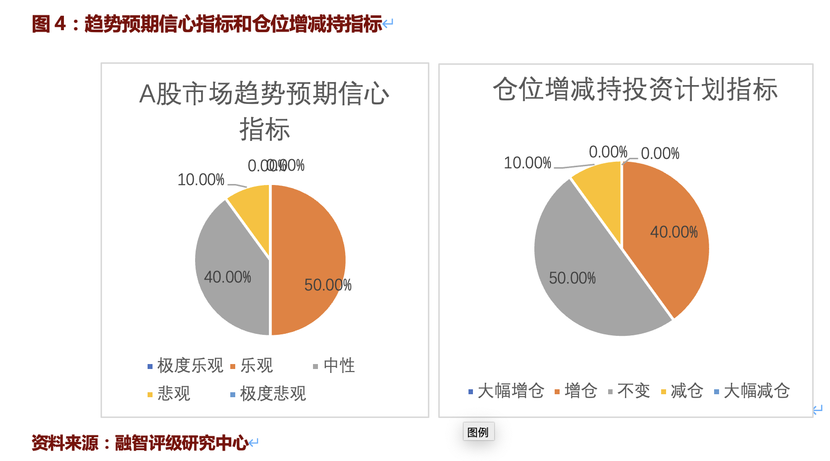 具体数值来看,2023年1月A股市场趋势预期信心指标值为120,比上月下降11.1%。其中无基金经理持极度乐观态度,与上月持平;50%的基金经理持乐观态度,比上月下降20%;40%的基金经理持中性观点,比上月上涨10%;10%的基金经理持悲观态度,比上月上涨10%;无基金经理持极度悲观态度,与上月持平。