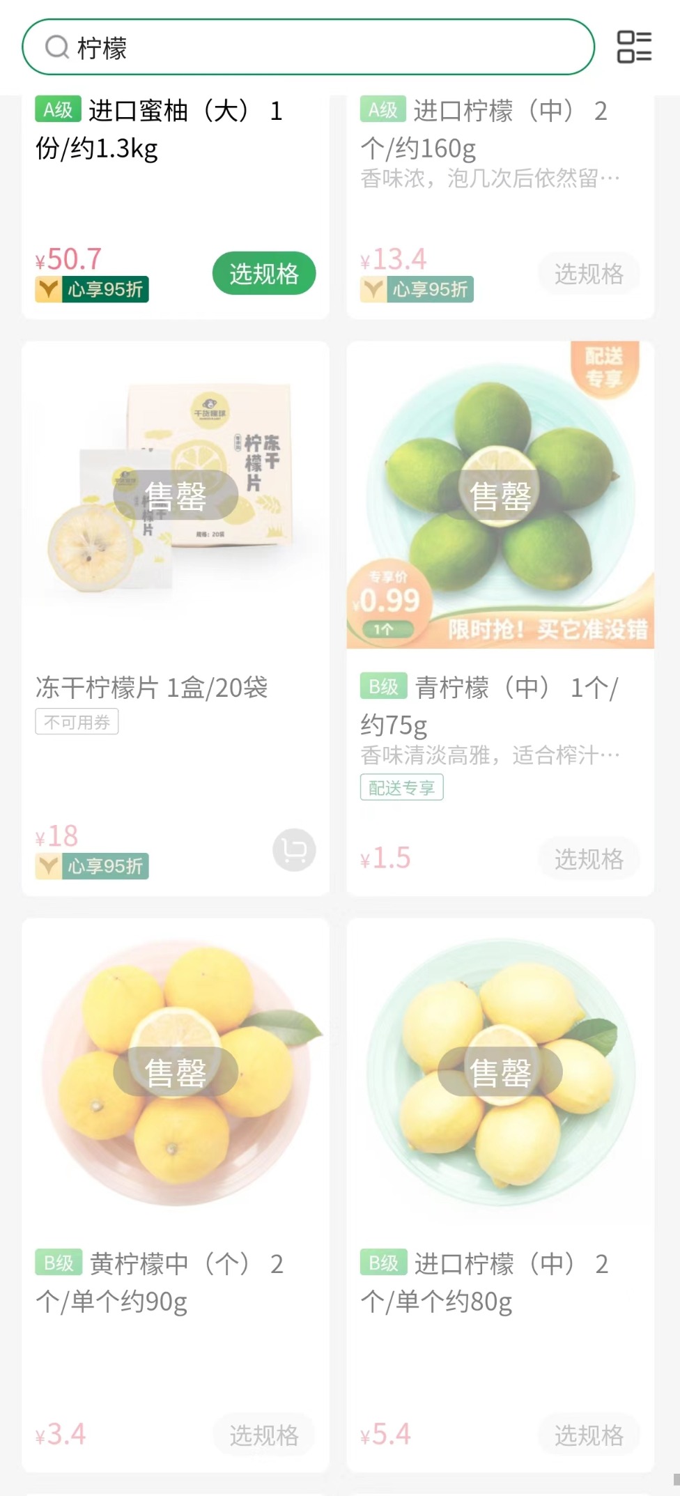 叮咚买菜平台上海部分地区柠檬及柠檬相关产品均已售罄