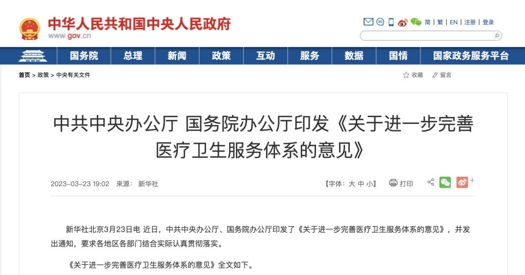 近日,中共中央办公厅、国务院办公厅印发《关于进一步完善医疗卫生服务体系的意见》(下称《意见》)。