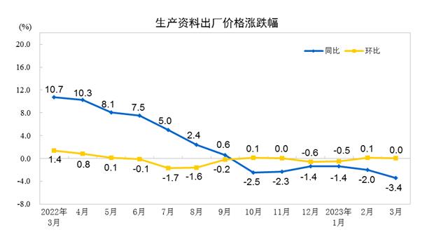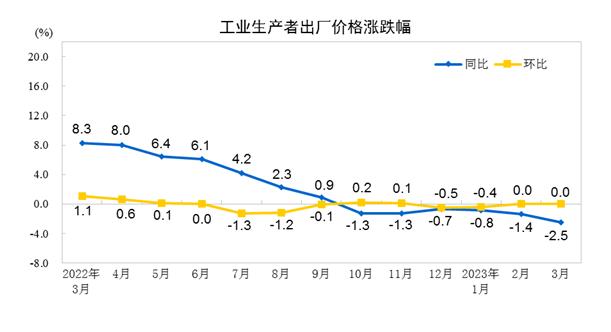 2023年3月份工业生产者出厂价格同比下降2.5% 环比持平