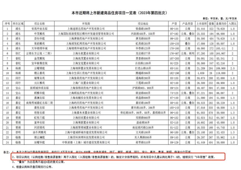 上海市房产交易中心表示,项目认购比(认购组数/准售房源套数)高于入围比(入围组数/准售房源套数)的,触发计分排序规则;所有项目中凡是认购比高于1.3的,继续实行“5年限售”政策。
