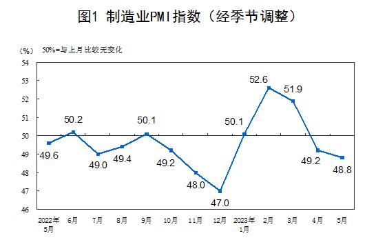 5月份,制造业采购经理指数(PMI)为48.8%,比上月下降0.4个百分点,低于临界点,制造业景气水平小幅回落。