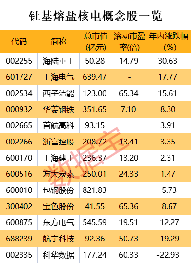 A股方面,多家上市公司已有参与甘肃武威市的钍基熔盐实验堆项目。上海建工于2019年9月中标钍基熔盐堆核能系统实验平台项目,由七建集团、安装集团、建工总院开展建设。
