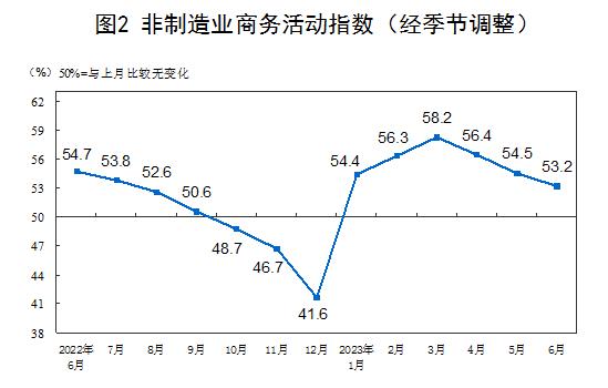 6月份,非制造业商务活动指数为53.2%,继续保持扩张态势。
