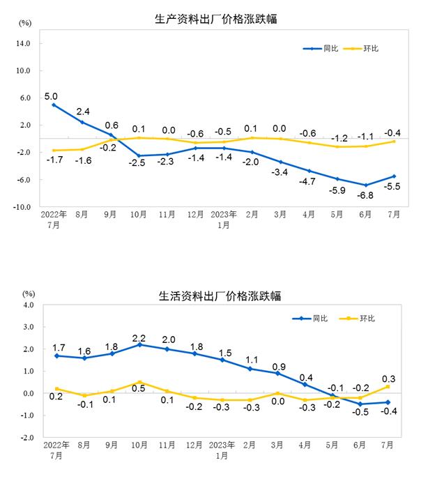 2023年7月份工业生产者出厂价格同比下降4.4% 环比下降0.2%
