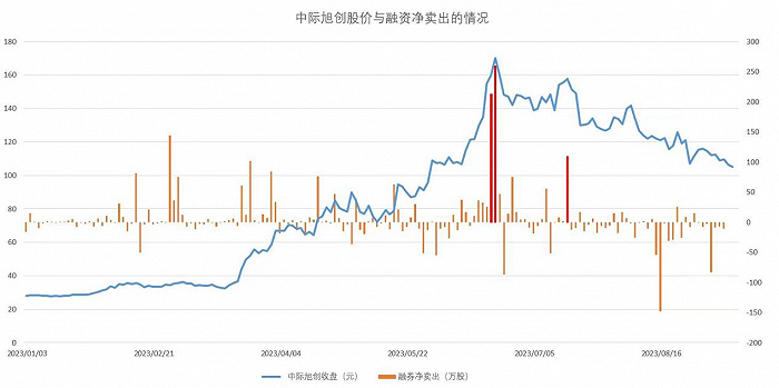 从下图可以明显看出,中际旭创的股价在6月19日和6月20日达到了年内高点,收盘价分别为160.01元/股和170元/股,后者也是该股的历史最高价。而这两天也是该股今年以来单日融券净卖出额最高的两天,分别为213.34万股和260.12万股。