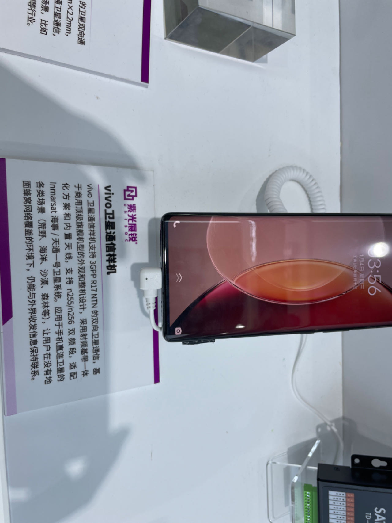 在此前的MWC上海展上,基于紫光卫星通信芯片的vivo卫星通信样机已经亮相,采用射频基带一体化方案和内置天线,适配Inmarsat海事/天通一号卫星系统。