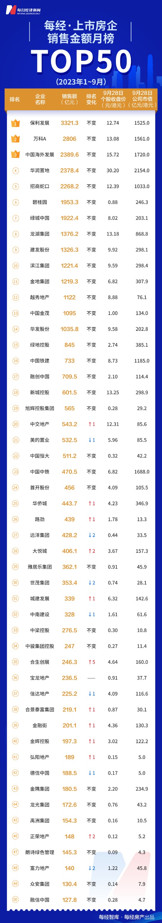 【“金九”有了!TOP50房企单月销售总额环比大增4成 保利、万科、中海位居前三】政策利好不断,房企竞逐“金九银十”,头部上市房企积极备战,但与之相对应的是,中小规模房企面临明显下滑趋势,9月份的销售数据进一步突显了这一趋势。