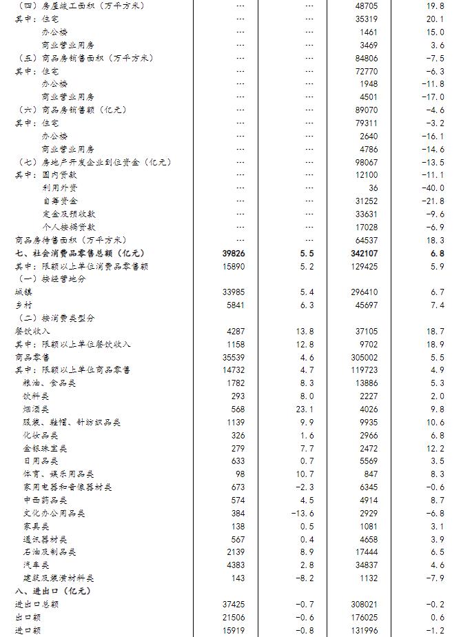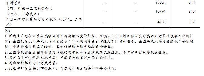 (1)国内生产总值及其分类项目增长速度按不变价计算,规模以上工业增加值及其分类项目增长速度按可比价计算,均为实际增长速度;其他指标除特殊说明外,按现价计算,为名义增长速度。