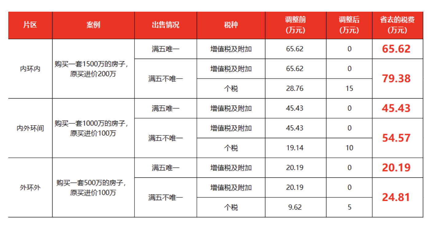 有中介机构表示,这一政策的调整将直接影响客户的增值税及个税。以居民出售持有5年以上的非普通住房为例,调整标准后如变为普通住房,将免征5.3%的增值税及附加(之前非普通住房按差额征收);涉及个人所得税的,核定征收按总价的1%(之前非普通住房按总价的2%征收)。