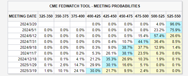 据CME美联储观察工具,市场目前普遍预计美联储首次降息将发生在今年6月份。