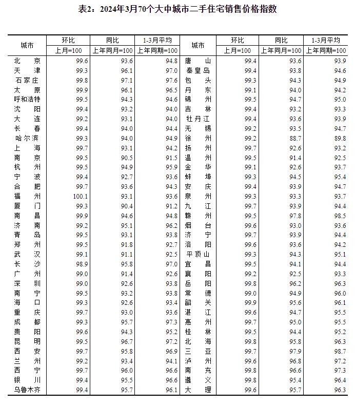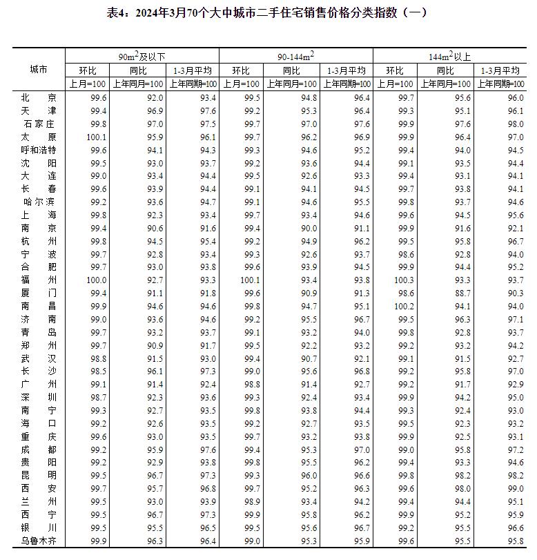 2024年3月份,70个大中城市新建商品住宅和二手住宅成交量比前期有所上升,各线城市商品住宅销售价格环比降幅略有收窄、同比降幅扩大。