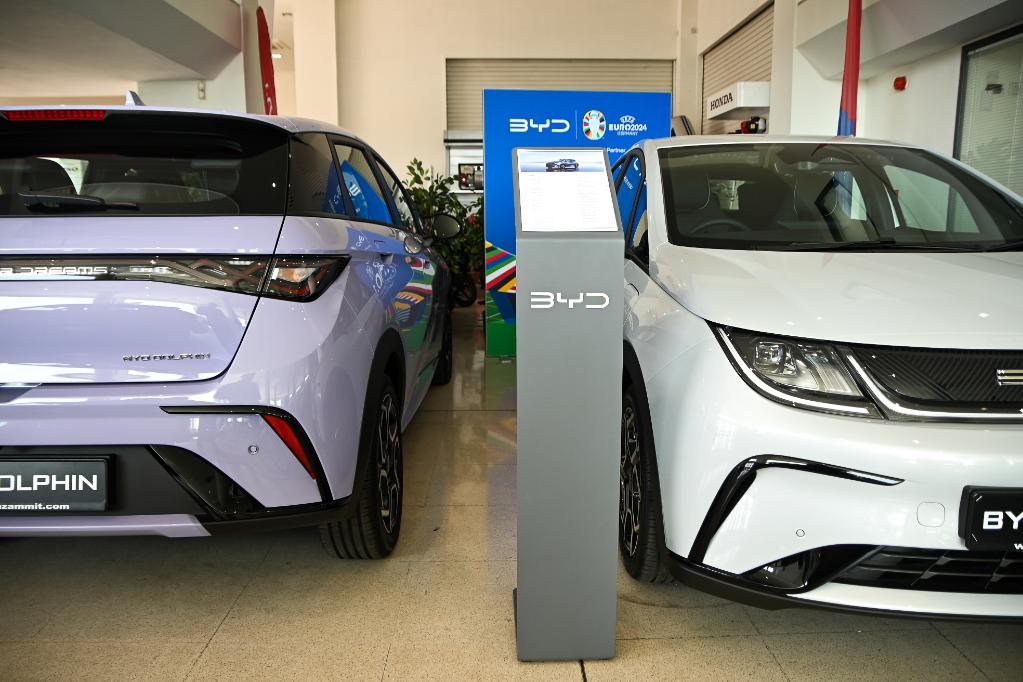 这是5月29日在马耳他比尔基卡拉拍摄的展示厅里的比亚迪纯电动汽车。新华社发(乔纳森·博格摄)
