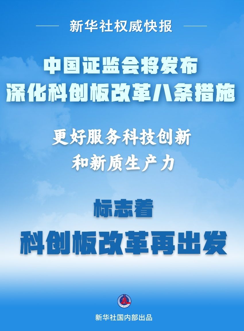 【证监会将推出“科创板八条”】科创板近日迎来开板五周年。证监会主席吴清在6月19日举行的陆家嘴论坛上宣布,证监会将推出“科创板八条”。这标志着科创板改革再出发。5年来,科创板和注册制的改革效应不断放大。此次改革将进一步突出科创板“硬科技”特色,健全发行承销、并购重组、股权激励、交易等制度机制,更好服务科技创新和新质生产力发展。