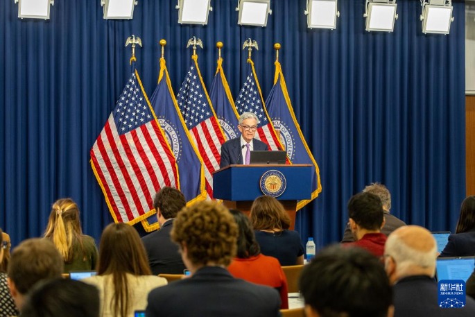 9月18日,美国联邦储备委员会主席鲍威尔在华盛顿出席记者会。新华社记者 胡友松 摄